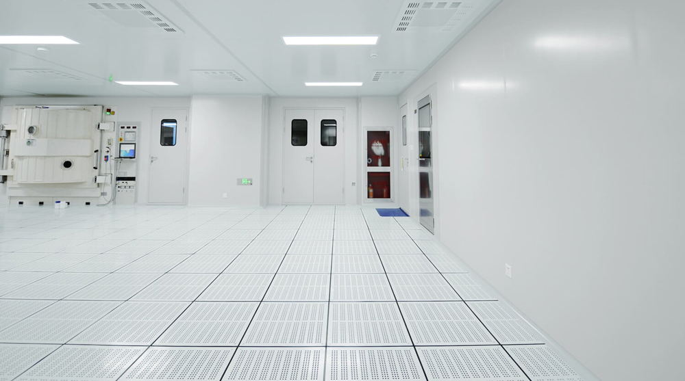 潔凈室內高架地板邊角位置板塊的安裝,應根據現場實際情況進行下料切割后鑲補,且應設可調支撐和橫桿,切割邊與墻體交接處應以柔軟的不產塵材料填縫。高架地板安裝后應做到行走無擺動、無聲響,牢固可靠,面層應平整、清潔,板塊接縫均應橫平豎直。